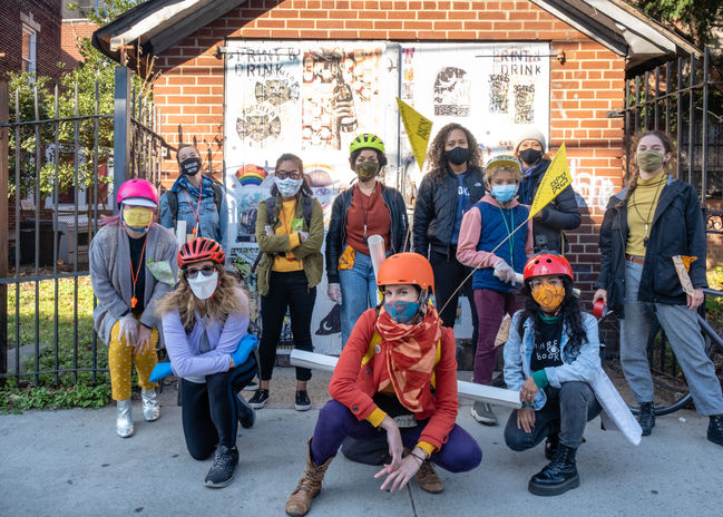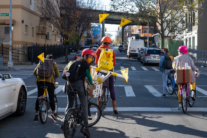 On the 21 of November, 13 people on bicycles distributed 177 rolls of artwork around Brooklyn in Bushwick, East New York, Brownsville, Weeksville, and Bed-Stuy. 80+ artists from over 10 countries contributed artwork. Reprints of the contributed artwork can be viewed at our 8 wheat-pasted locations, and the original artwork was rolled up in bundles of 3 to be given away at random and for free to people along the distribution route.